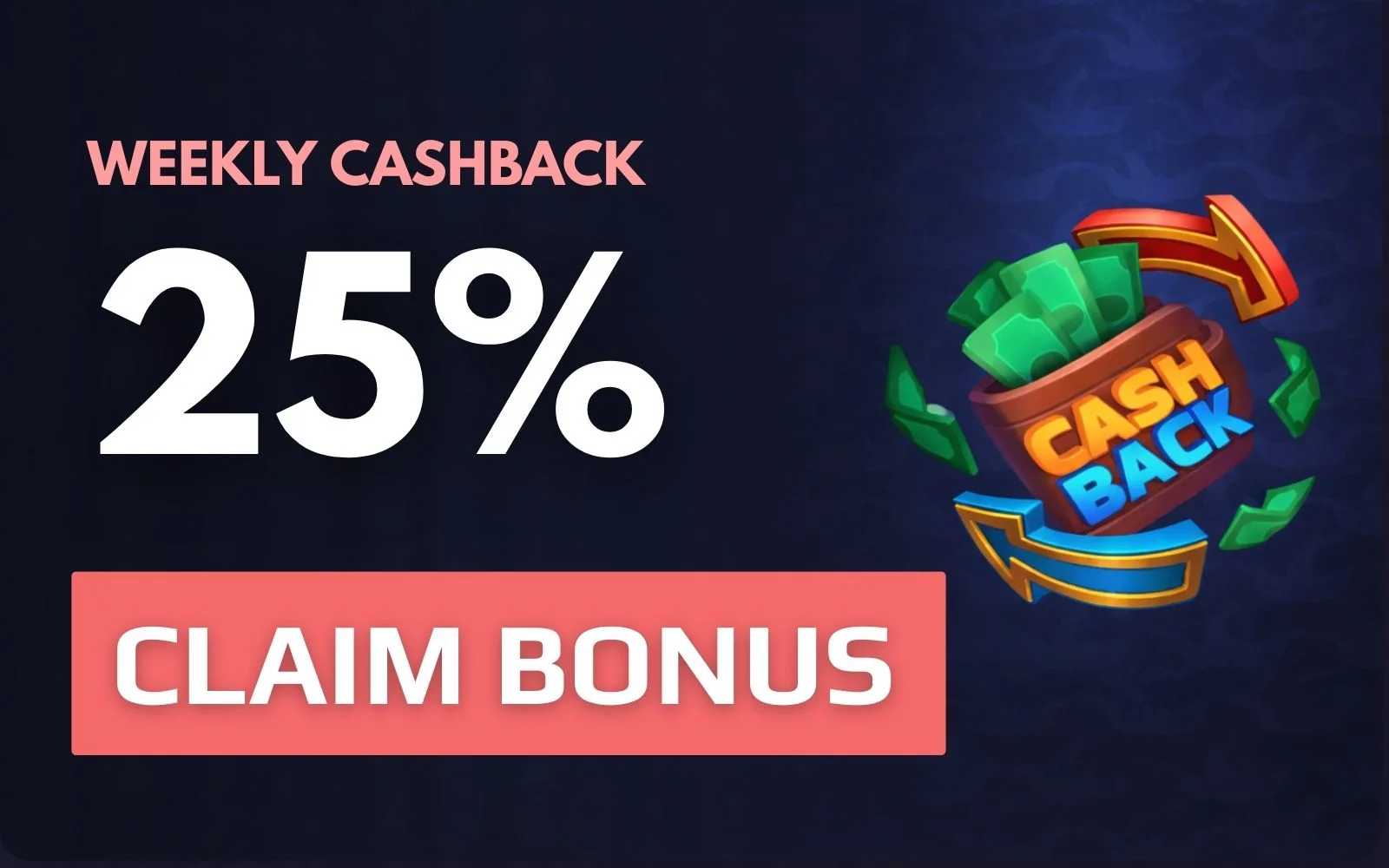 Até 25% de cashback semanal, atribuído com base na atividade do jogador